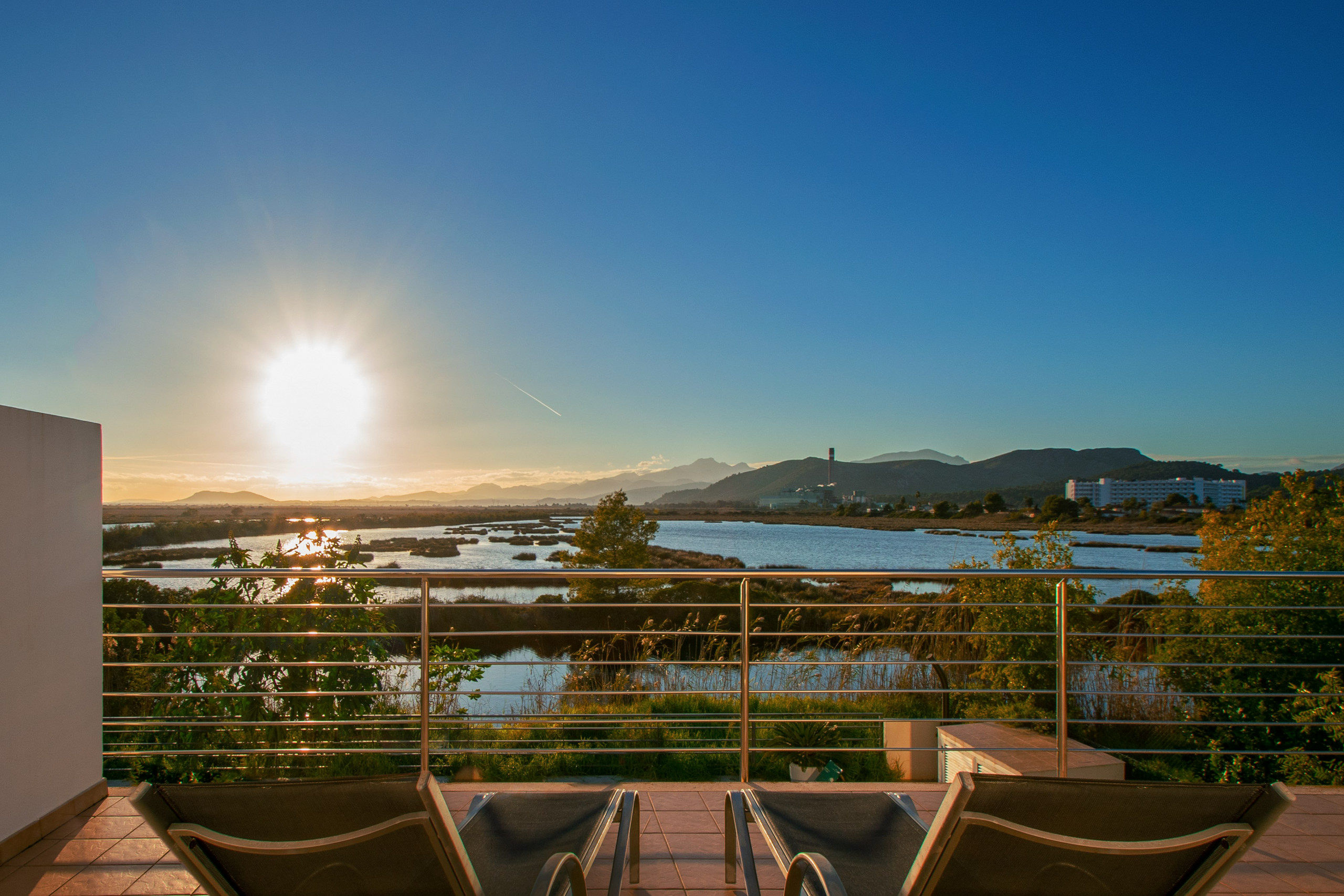 Lake Village es una villa formada por dos adosados, en Playa de Muro con vistas a la montaña y al paisaje natural y privilegiado de la Albufera de Alcudia, próxima a la playa y muy bien comunicada para moverse por el norte de la isla.