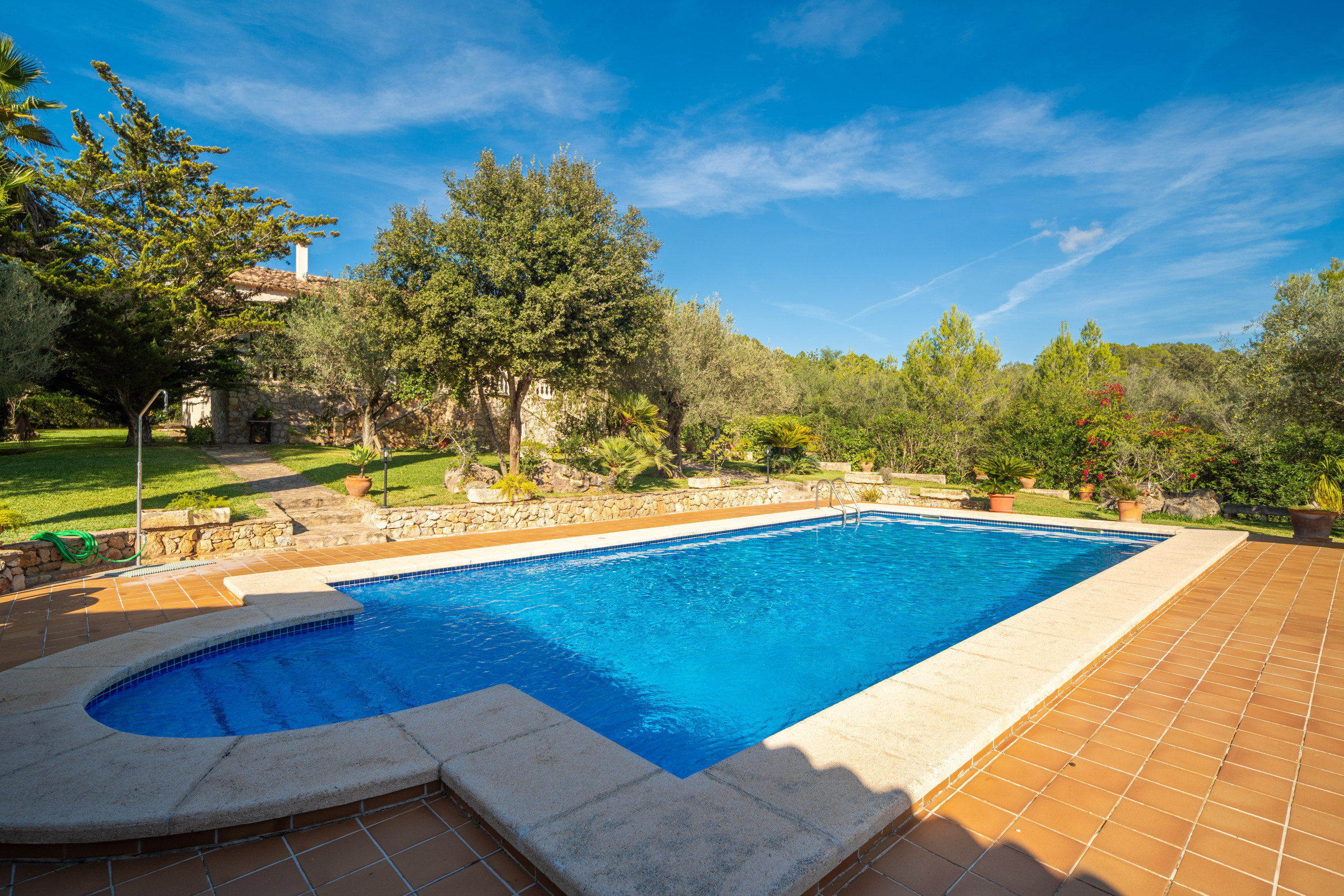 Profitez de vastes espaces verts et d'une piscine privée qui invite à passer de longues heures au soleil majorquin. L'environnement est idéal pour les familles ou les groupes qui recherchent la tranquillité et la nature.