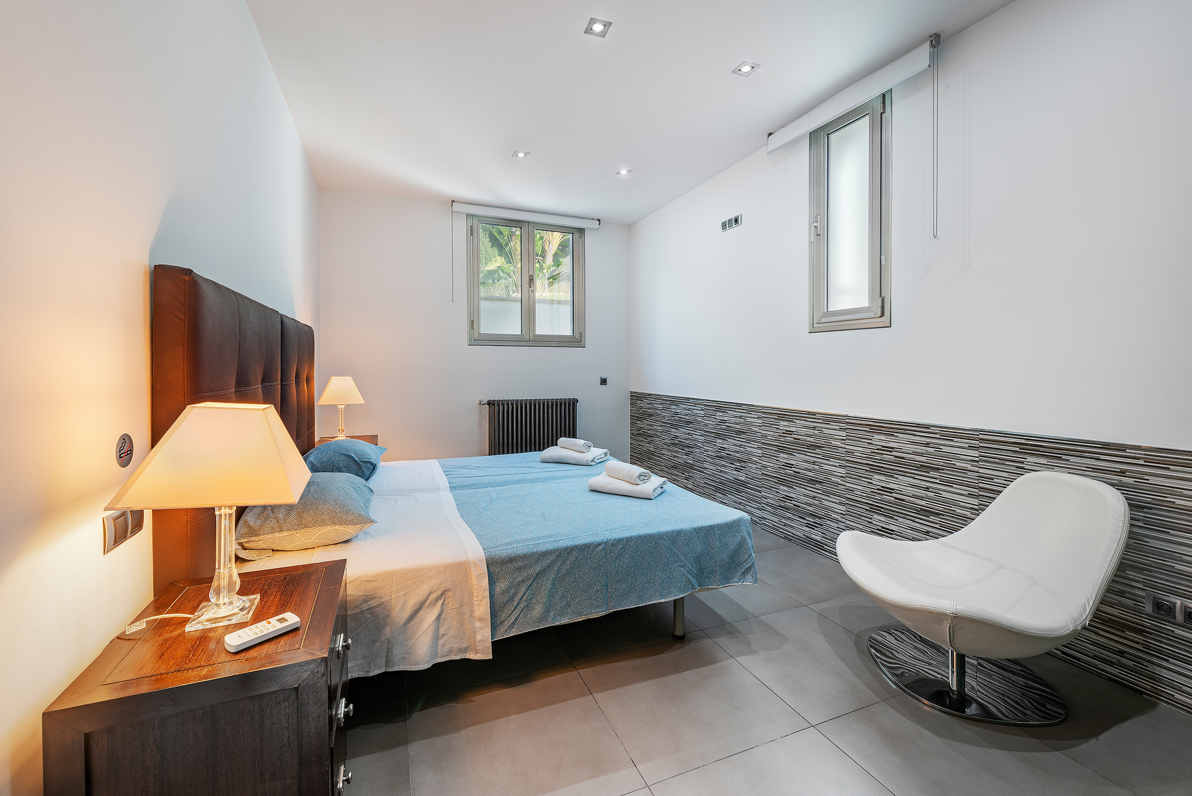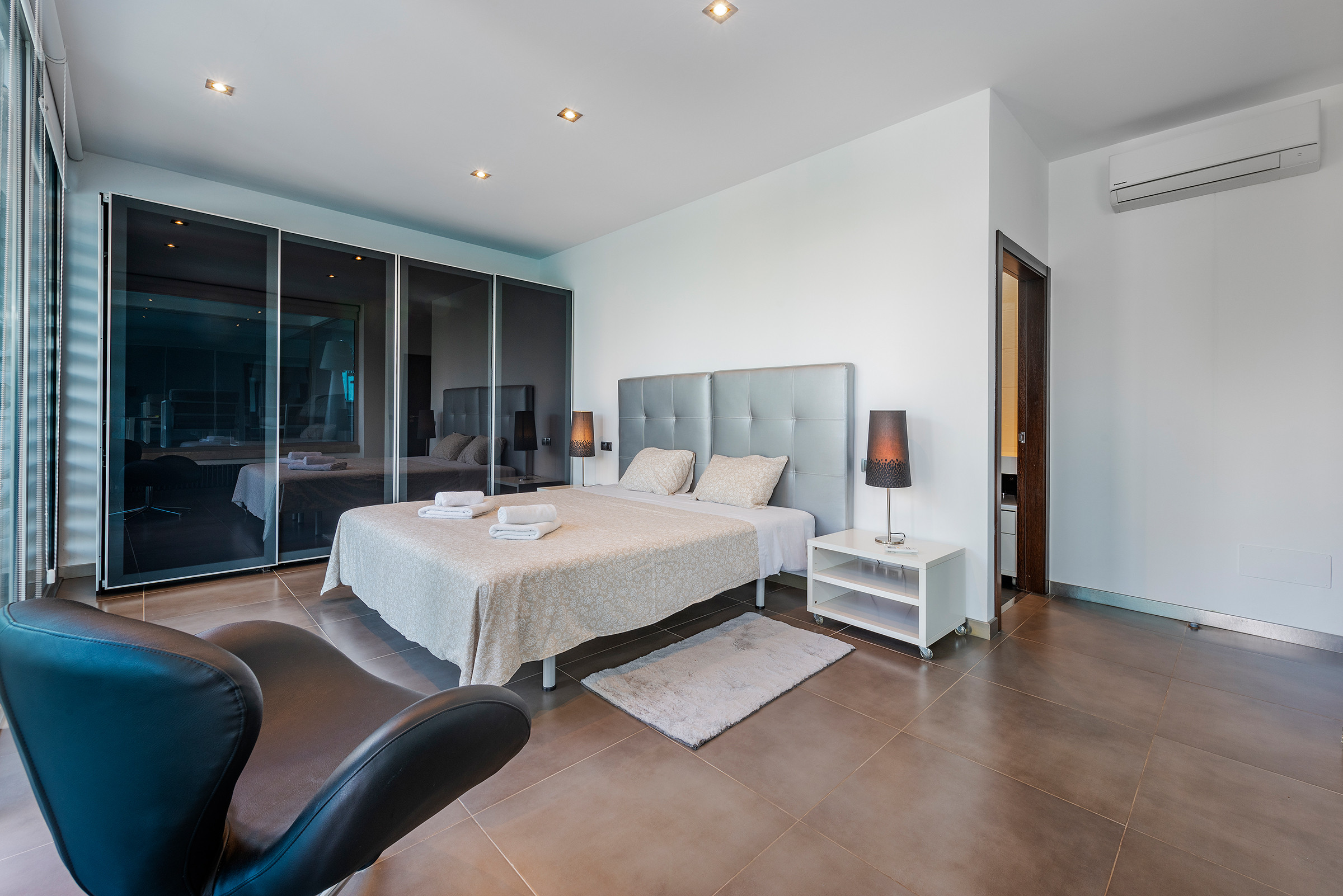Spectacular luxury villa in the sky of Bonaire with holiday licence (ETV) for 8 people, the property consists of a plot of 1050m2 with 400m2 of housing, the dwelling has three floors, on the upper floor is the entrance of the house a spacious living-dining room, fully equipped American kitchen with views of Pollensa Bay, on this floor we also find a double bedroom with bathroom. On the ground floor there are three double bedrooms, three bathrooms (two of them en suite).