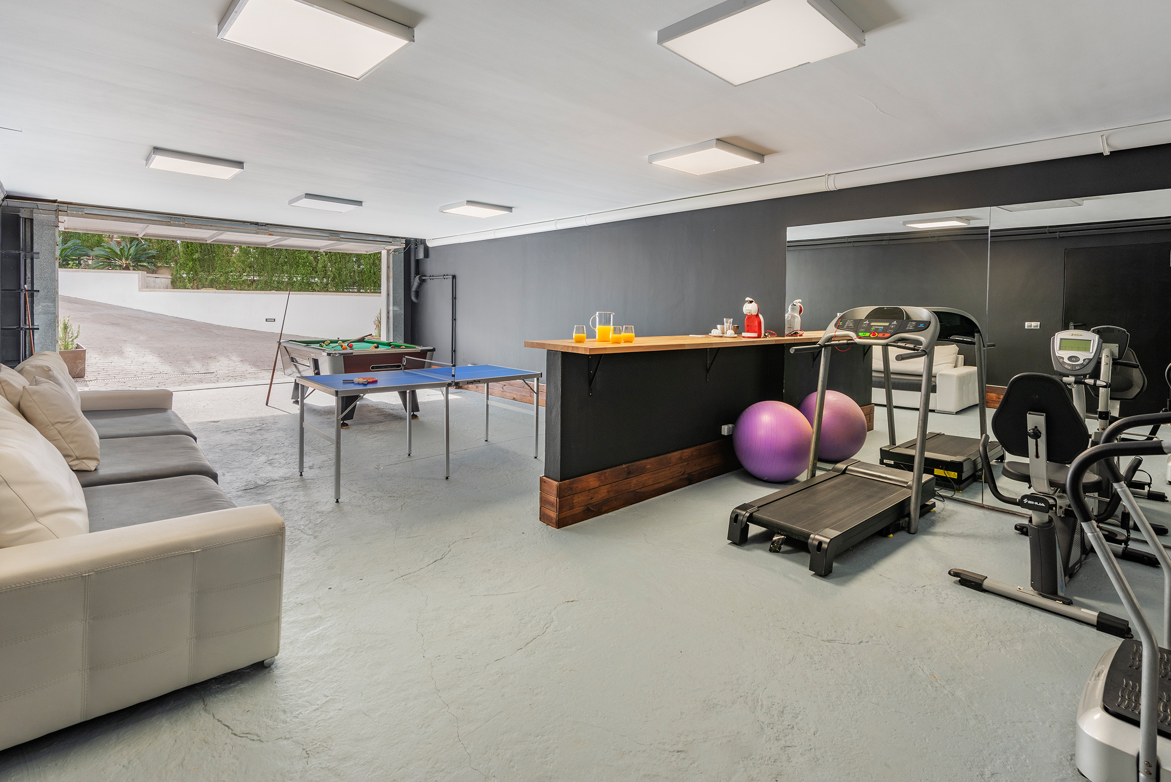 In the basement we find the laundry, garage and leisure area with ping pong table, etc.
