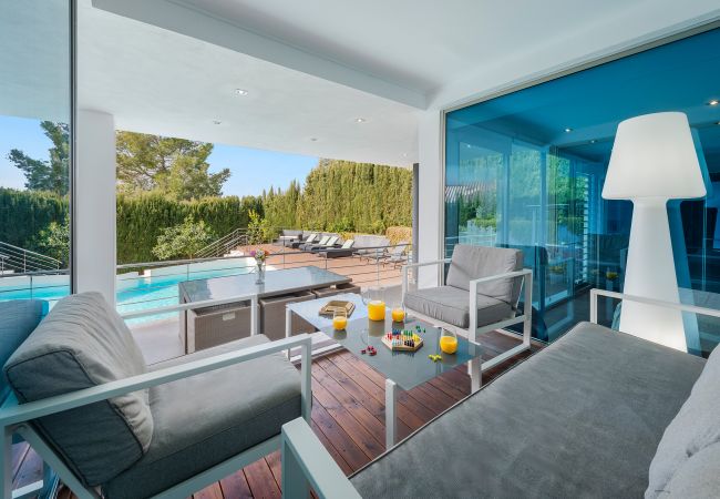 Die Immobilie verfügt über Heizung und Klimaanlage in allen Räumen, ein spektakuläres 9*9 Meter großes Schwimmbad mit üppigem Garten und atemberaubenden Ausblicken auf die Berge und die Bucht von Pollensa.