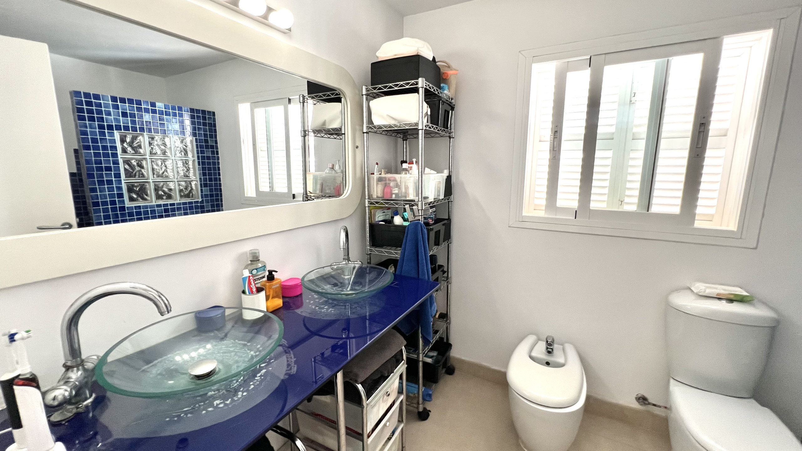 Das Haus ist auf drei Etagen verteilt. Im Erdgeschoss befindet sich ein geräumiger Eingangsbereich, der Zugang zum Wohn-Esszimmer, einer vollständigen Halboffenküche, einem Doppelzimmer mit eingebautem Schrank, einem vollständigen Badezimmer und einer Tür, die Zugang zu einem geräumigen Innenhof bietet. Über eine schöne Designtreppe gelangen wir in das erste Obergeschoss. Dort befindet sich ein geräumiger Flur mit schöner Aussicht auf die Serra de Tramuntana, der Zugang zu drei Doppelzimmern mit eingebauten Schränken (Ankleidezimmer en Suite) und zwei vollständigen Badezimmern (eines davon en Suite) bietet. Abschließend gibt es ein Kellergeschoss, das derzeit als Heimkino und Fitnessstudio mit zwei geräumigen Räumen genutzt wird, die aktuell als Ankleidezimmer dienen.