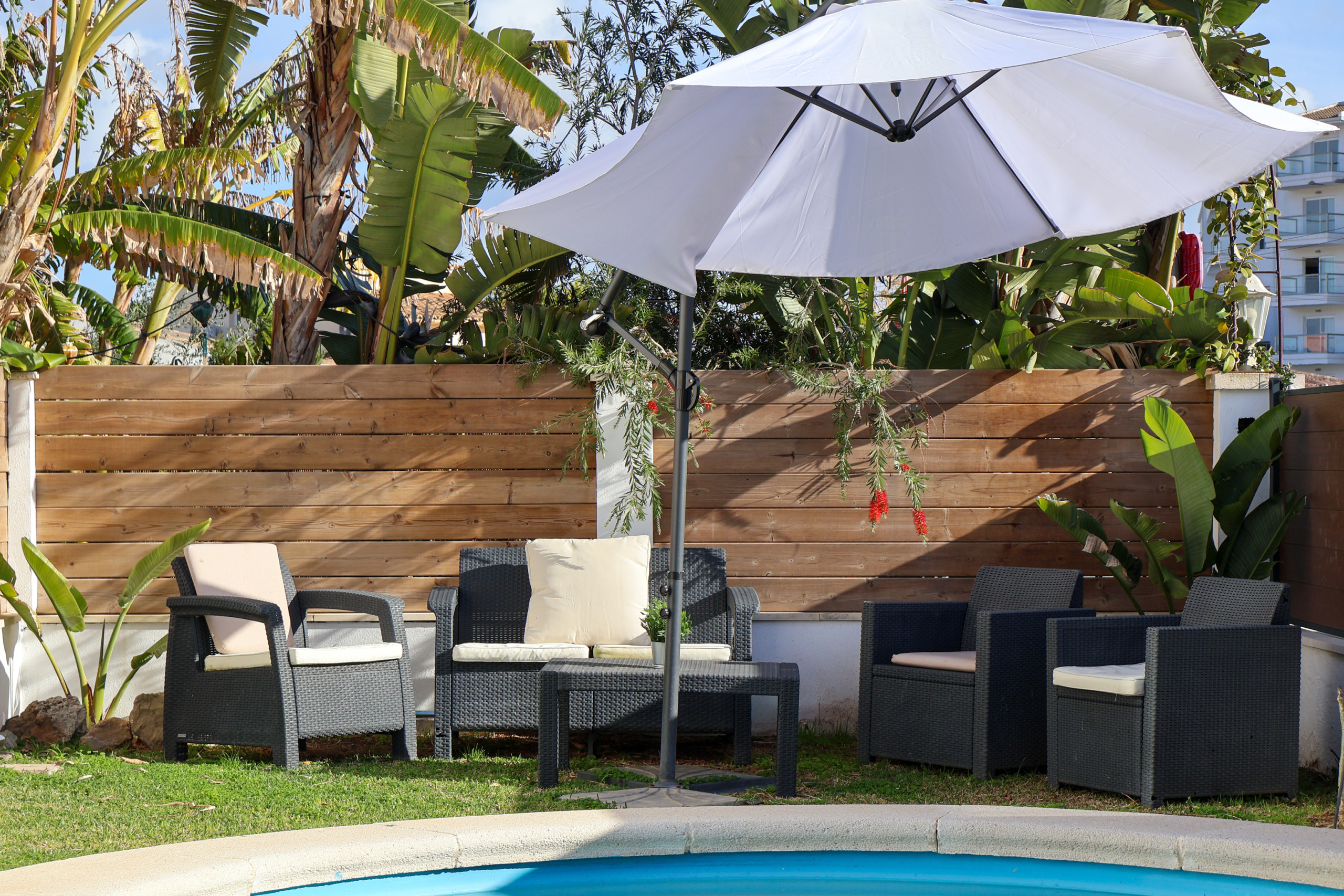 Der private Pool ist ein weiteres Highlight der Villa und bietet einen erfrischenden Ort, um die mallorquinische Sonne zu genießen. Das umzäunte Grundstück garantiert die Privatsphäre der Gäste, während der Grill es ermöglicht, Mahlzeiten im Freien zu organisieren und das sonnige Wetter voll auszunutzen.