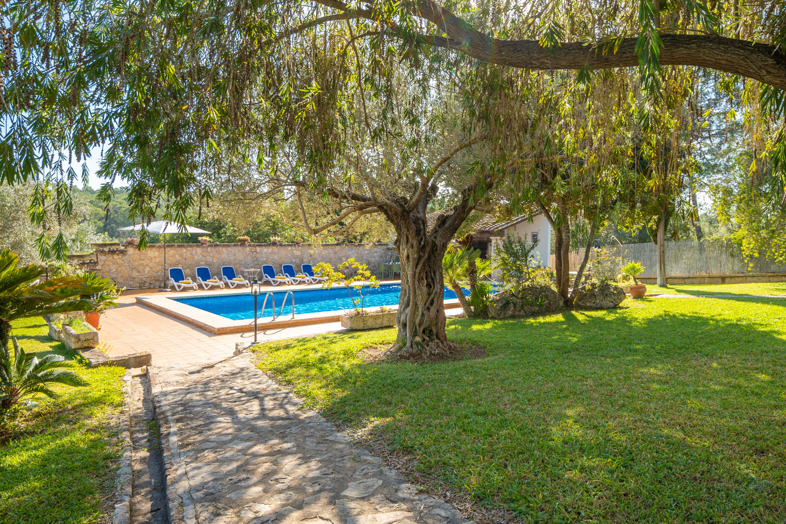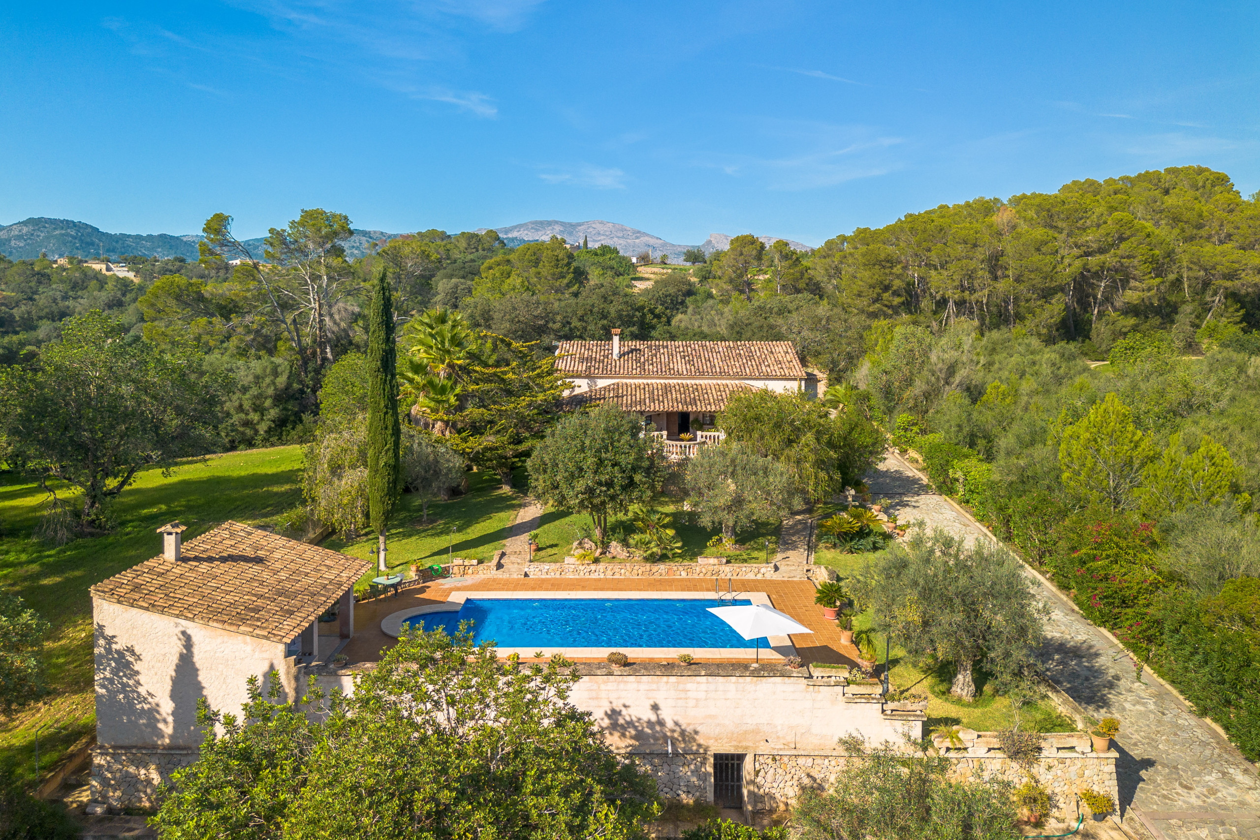 Genießen Sie weitläufige Grünflächen und einen privaten Pool, der dazu einlädt, lange Stunden in der mallorquinischen Sonne zu verbringen. Die Umgebung ist ideal für Familien oder Gruppen, die Privatsphäre und Natur suchen.